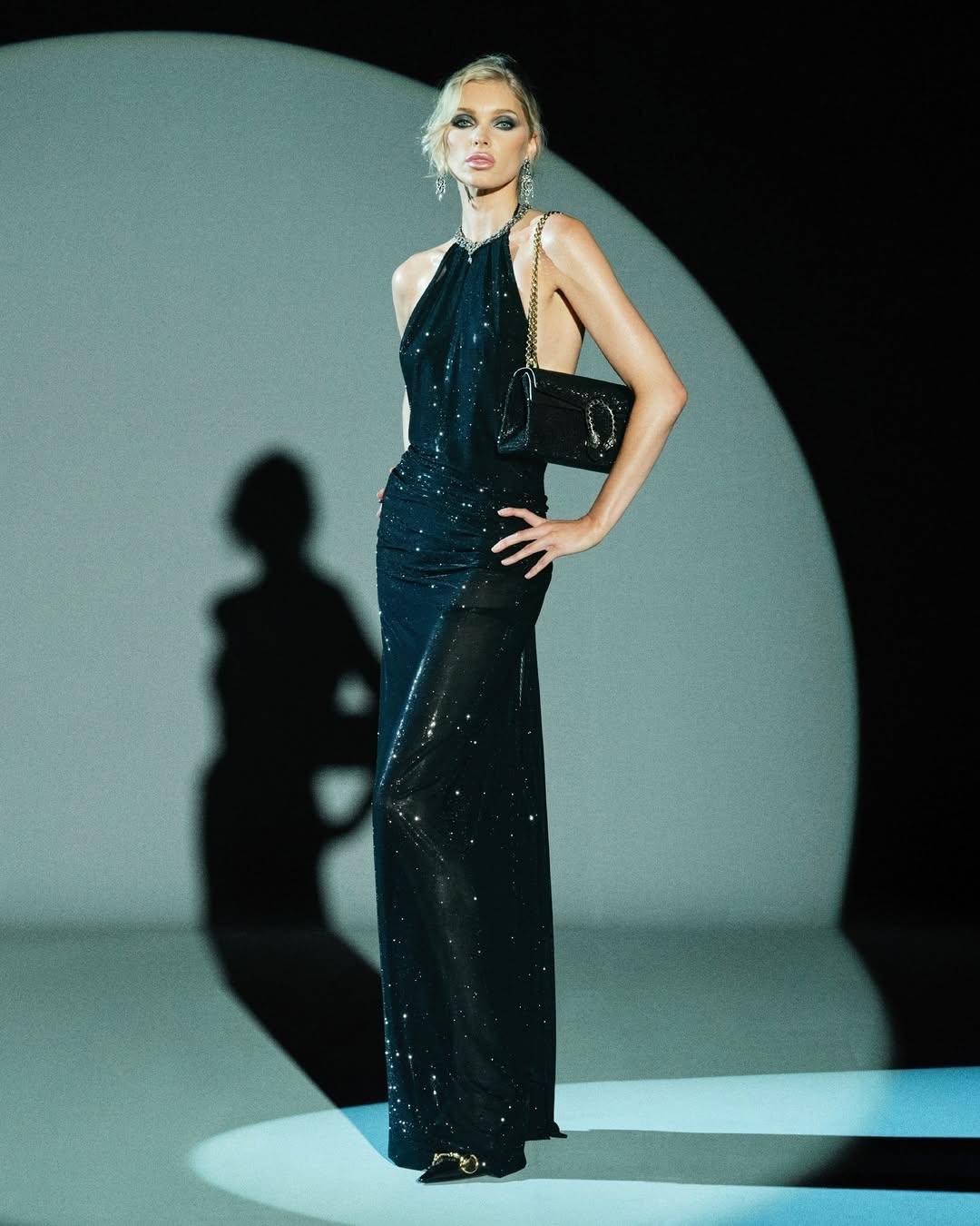 Модель Эльза Хоск снялась в платье с голой спиной для рекламы
