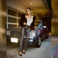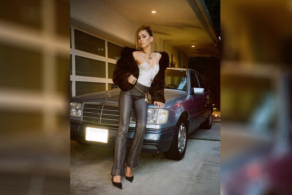 33-летняя Майли Сайрус снялась в белом топе с кружевным лифом, который дополнила серыми кожаными брюками, темно-коричневой короткой шубой и черными туфлями на каблуках. Певица завершила образ серьгами и каффами, золотым массивным колье, кольцом и цепочкой на талию. Актриса была запечатлена с собранными волосами и макияжем на фоне автомобиля.