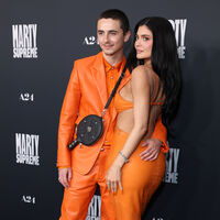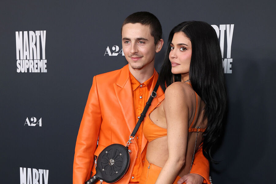 Кайли Дженнер и Тимоти Шаламе посетили премьеру фильма «Марти Великолепный», в котором актер исполнил главную роль. Мероприятие состоялось 8 декабря в Лос-Анджелесе. Модель появилась на публике в оранжевом макси-платье с глубоким декольте и вырезами и массивном колье с крестами. Артист предпочел оранжевую рубашку, кожаный костюм в тон, черную сумку и ботинки. Он обнимал звезду реалити-шоу перед фотографами.