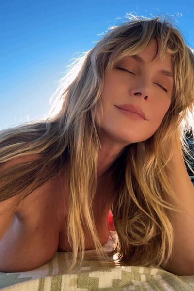 52-летняя Хайди Клум лежала на пледе и загорала на солнце. Супермодель предстала перед камерой с распущенными волосами и без косметики.
