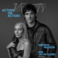 Гвинет Пэлтроу позировала в обнимку со своим коллегой Джейкобом Элорди. Актриса была запечатлена в черном атласном платье. Артистке сделали макияж и уложили волосы. Элорди предстал перед камерой в кожаной куртке, футболке и брюках.