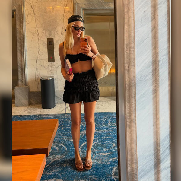 42-летняя Наталья Рудова показала кадры, сделанные во время поездки в Дубай. На одном из кадров актриса стояла перед зеркалом в черном комплекте, который состоял из откровенного топа и мини-юбки. Артистка добавила к образу солнцезащитные очки, кепку, бежевую сумку и коричневые кожаные тапки Hermes. Звезда сериала «Универ» позировала с распущенными волосами и без макияжа.
