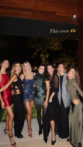 Иванка Трамп позировала перед камерой в синем мини-платье с разрезом, которое было украшено стразами и пайетками. 44-летняя бизнесвумен добавила к наряду массивные серьги и золотые босоножки на каблуках. Дочь президента США предстала в кадре с уложенными распущенными волосами и вечерним макияжем. Знаменитость была запечатлена в окружении подруг.