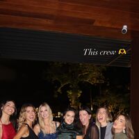 Иванка Трамп позировала перед камерой в синем мини-платье с разрезом, которое было украшено стразами и пайетками. 44-летняя бизнесвумен добавила к наряду массивные серьги и золотые босоножки на каблуках. Дочь президента США предстала в кадре с уложенными распущенными волосами и вечерним макияжем. Знаменитость была запечатлена в окружении подруг.
