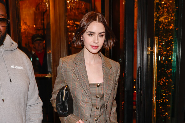 Лили Коллинз подловили папарацци в Париже 14 декабря. Актриса появилась на публике в коричневом полосатом костюме, который состоял из жакета, топа с золотыми пуговицами и широких брюк. Артистка дополнила образ кольцом, серьгами и черным кожаным клатчем. Знаменитость уложила распущенные волосы и сделала макияж с коричневыми тенями и розовой помадой.