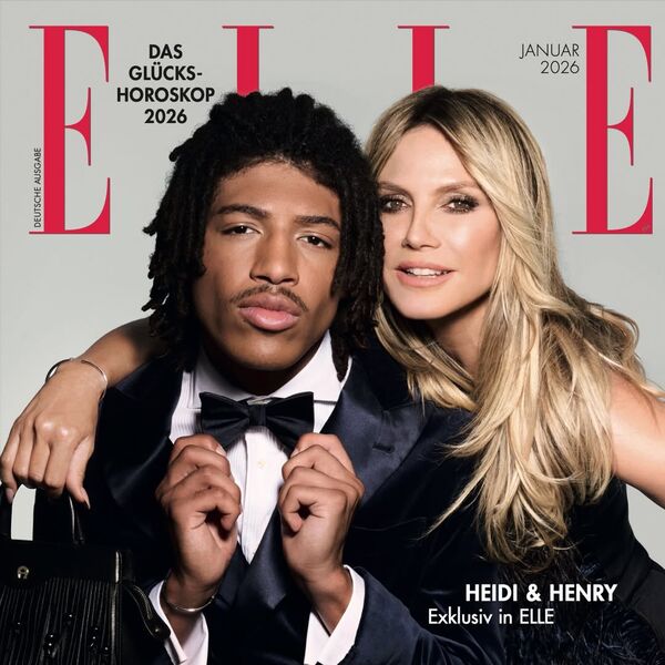 52-летняя Хайди Клум предстала на обложке издания в черном мини-платье, украшенном перьями, и браслете. Супермодели сделали макияж с блестящими коричневыми тенями, тушью, румянами и нежно-розовой помадой. Телеведущая позировала с уложенными распущенными волосами. Генри был запечатлен в белой рубашке с бабочкой и черном смокинге.