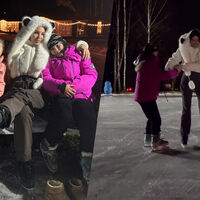 Оксана Самойлова прокатилась на своем первом катке на ферме, который залили для ярмарки. Модель позировала вместе с детьми от Джигана.