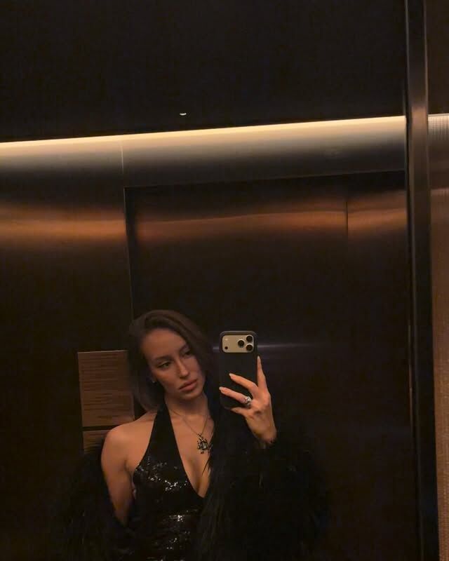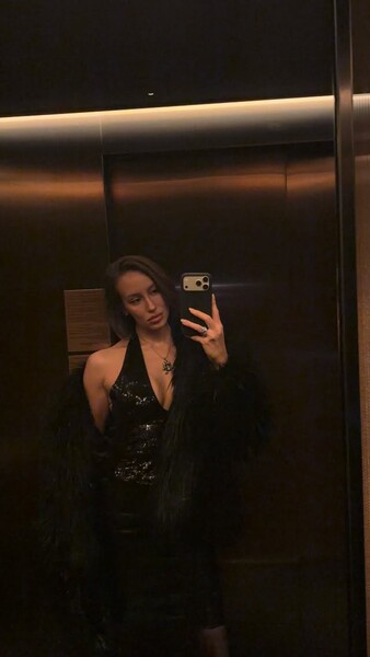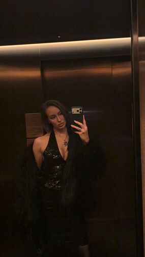Валентина Иванова оголила часть груди в черном блестящем топе. Волосы модель выпрямила и сделала вечерний макияж. Съемку она устроила в лифте перед предновогодним мероприятием.