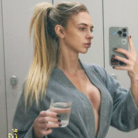 41-летняя Надежда Сысоева стояла перед зеркалом в сером махровом халате без бюстгальтера. Телеведущая была запечатлена с собранными в хвост волосами и без косметики. Актриса позировала со стаканом воды после тренировки.