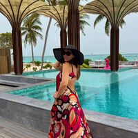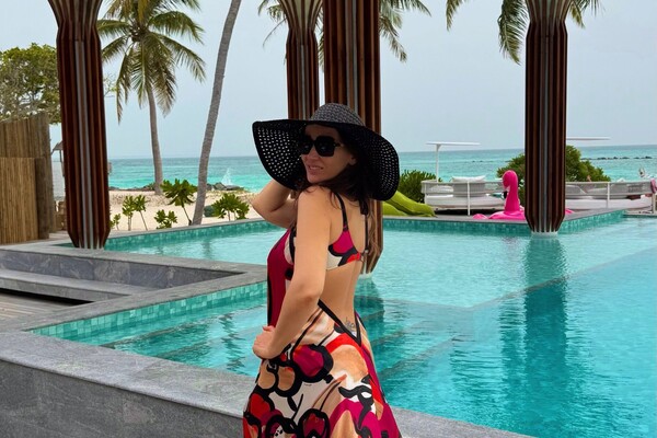 48-летняя Анфиса Чехова позировала перед камерой в разноцветном макси-платье с вырезом на спине, которое дополнила широкой соломенной шляпой и черными солнцезащитными очками. Телеведущая была запечатлена с распущенными волосами и без макияжа. Снимок был сделан во время отдыха знаменитости с женихом, продюсером Александром Златопольским на Мальдивах.
