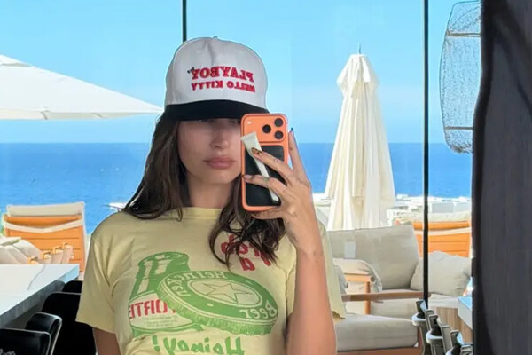 29-летняя Хейли Бибер стояла перед зеркалом в приподнятой желтой футболке с принтом, которую дополнила белыми микрошортами в горошек и кепкой с надписью. Модель позировала с распущенными волосами и макияжем в естественном стиле.