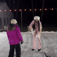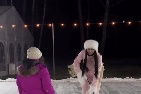 Оксана Самойлова занялась хоккеем с дочерьми на катке своей ферме. Семья позировала в комбинезонах и на фигурных коньках.