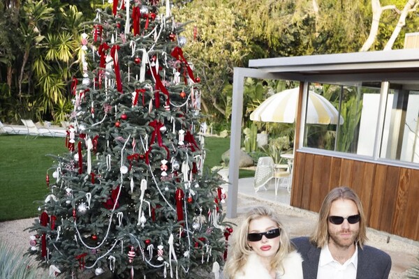 Модель Эльза Хоск снялась с мужем и дочерью у новогодней елки
