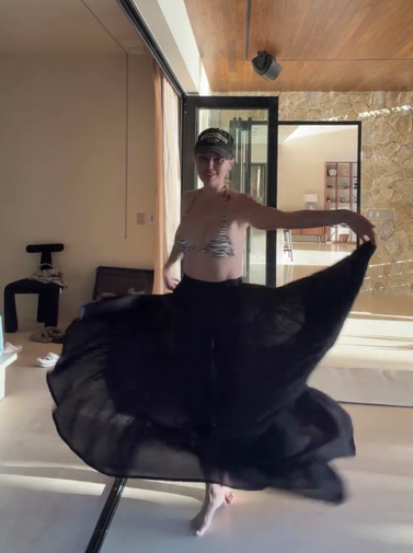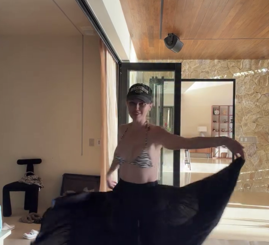 Виктория Боня рассказала, что прилетела на отдых в «секретное место» и показала интерьер своей виллы. В ролике телеведущая предстала в крошечном лифе бикини и черной макси-юбке. Модель также надела кепку. Знаменитость собрала волосы в пучок и отказалась от макияжа. В начале видео она станцевала на фоне временного места пребывания.
