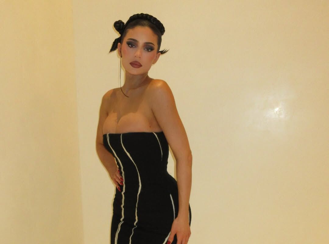 Модель Кайли Дженнер показала фигуру в облегающем винтажном платье