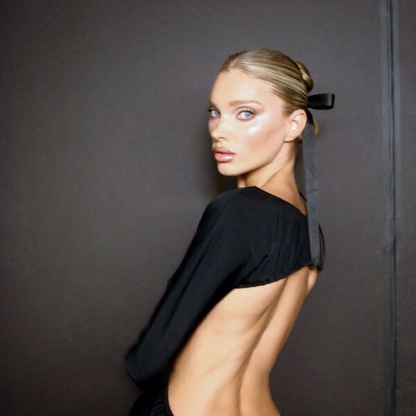 Эльза Хоск снялась в черном платье с голой спиной. Волосы модель собрала в низкий пучок и сделала легкий вечерний макияж.