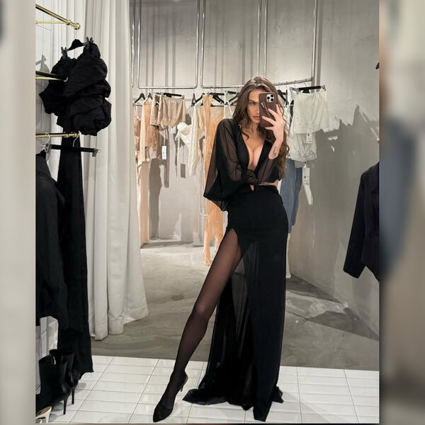 43-летняя Алена Водонаева стояла перед зеркалом в черном полупрозрачном макси-платье с глубоким декольте, под которое не стала надевать бюстгальтер. Телеведущая добавила к наряду капроновые колготки в тон и туфли на каблуках. Знаменитость позировала с уложенными распущенными волосами и макияжем с темно-коричневой помадой. На другом фото блогерша предстала в облегающем комбинезоне.
