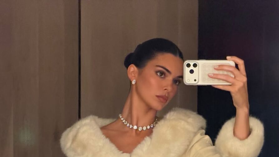 30-летняя Кендалл Дженнер позировала в кадре в молочном костюме с меховой отделкой, который состоял из приталенного жакета и мини-юбки. Модель добавила к комплекту серьги с бриллиантами и ожерелье. Звезда реалити-шоу собрала волосы в гладкий пучок и сделала макияж с черной тушью, румянами и розовой матовой помадой.