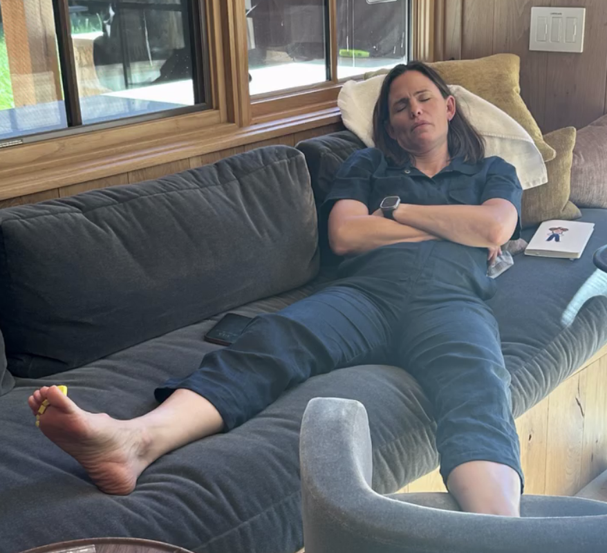 Сначала 53-летняя Дженнифер Гарнер позировала в облегающем черном платье, а также с укладкой и макияжем. Затем актриса продемонстрировала фото и видео, где предстала без косметики и фильтров, лежа на диване.