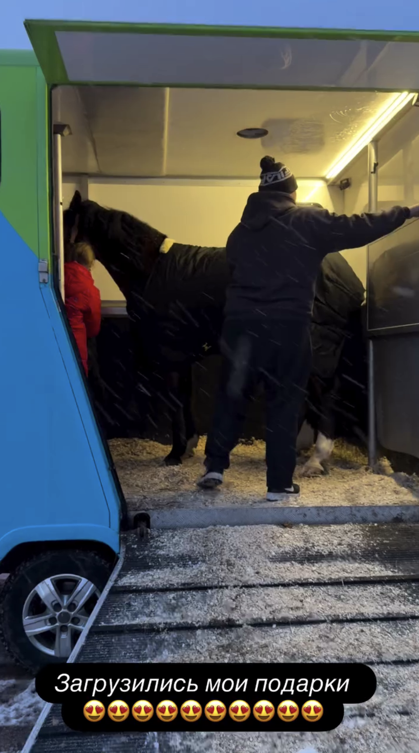 Оксана Самойлова подарила себе лошадей в Новый год. Модель сняла процесс перевозки на камеру.
