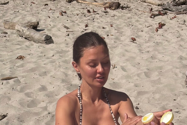 46-летняя Виктория Боня предстала перед камерой в лифе бикини с анималистичным принтом, который сочетала с облегающими черными шортами. Телеведущая также надела серьги и цепочку с кулоном. Модель была запечатлена с собранными в пучок волосами и без косметики на пляже. Знаменитость наносила на себя солнцезащитный крем.