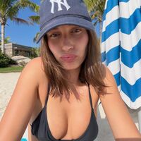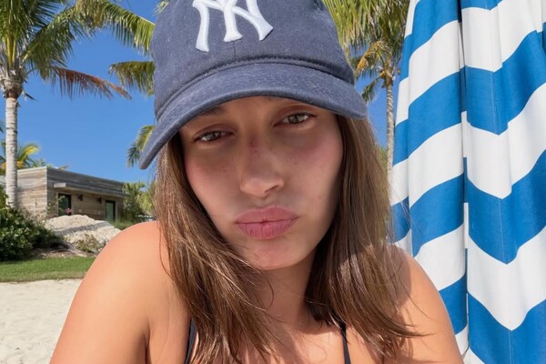 29-летняя Хейли Бибер позировала в черном лифе бикини и темно-синей кепке с вышивкой. Звезда подиумов предстала перед камерой с распущенными волосами без укладки и макияжа. Манекенщица была запечатлена на пляже на фоне виллы и пальм.