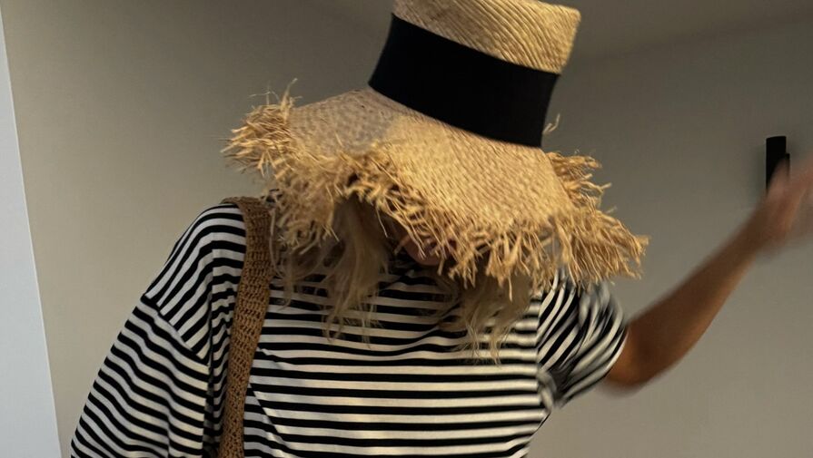 Эльза Хоск позировала в белой мини-юбке и полосатом топе. Образ дополнила соломенная шляпа, бархатные балетки и сумка из джута. Волосы модель распустила и отказалась от макияжа.