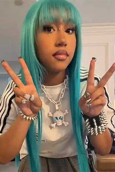 Норт Уэст опубликовала видео в Instagram (владелец компания Meta признана в России экстремистской и запрещена), в котором позировала в парике с голубыми длинными волосами. Дочь Ким Кардашьян и Канье Уэста также надела пирсинг и сделала макияж с наращенными ресницами, контурингом, румянами и коричневым блеском. Девочка была запечатлена в белой футболке, серых штанах и цепочке с блестящей подвеской.