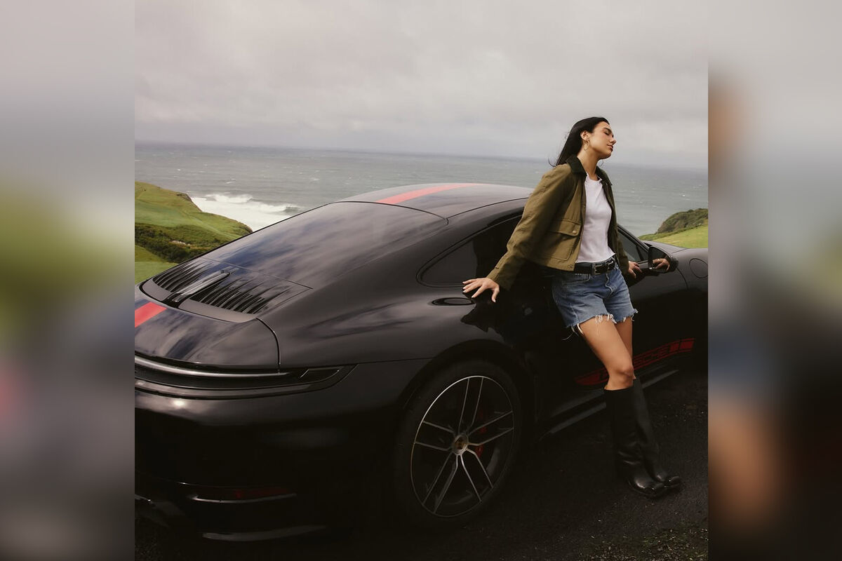 Дуа Липа снялась в рекламной кампании бренда Porsche. 30-летняя поп-исполнительница позировала перед фотографом в белой футболке, синих коротких шортах, зеленой куртке в стиле милитари и черных высоких кожаных сапогах. Певица дополнила образ серьгами-кольцами и кожаным ремнем. Знаменитость была запечатлена с распущенными волосами у автомобиля.