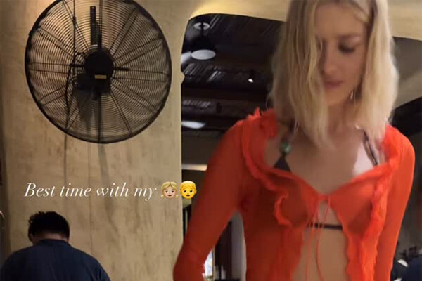 39-летняя Елена Перминова вышла на публику в оранжевом прозрачном топе, под который надела черный лиф. Модель добавила к образу коричневые облегающие брюки-клеш. Манекенщица была запечатлена с кудрявыми распущенными волосами и макияжем в естественном стиле. Звезда держала за руку сына Александра.