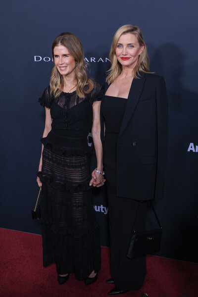 53-летняя Кэмерон Диас стала гостьей церемонии вручения премии WWD Style Awards, которая прошла 9 января в Лос-Анджелесе. Актриса предпочла для закрытого мероприятия черное макси-платье с вырезом сзади, жакет, капроновые колготки, остроносые балетки и сумку. Артистке уложили волосы в локоны и сделали макияж с черными стрелками и красной помадой.
