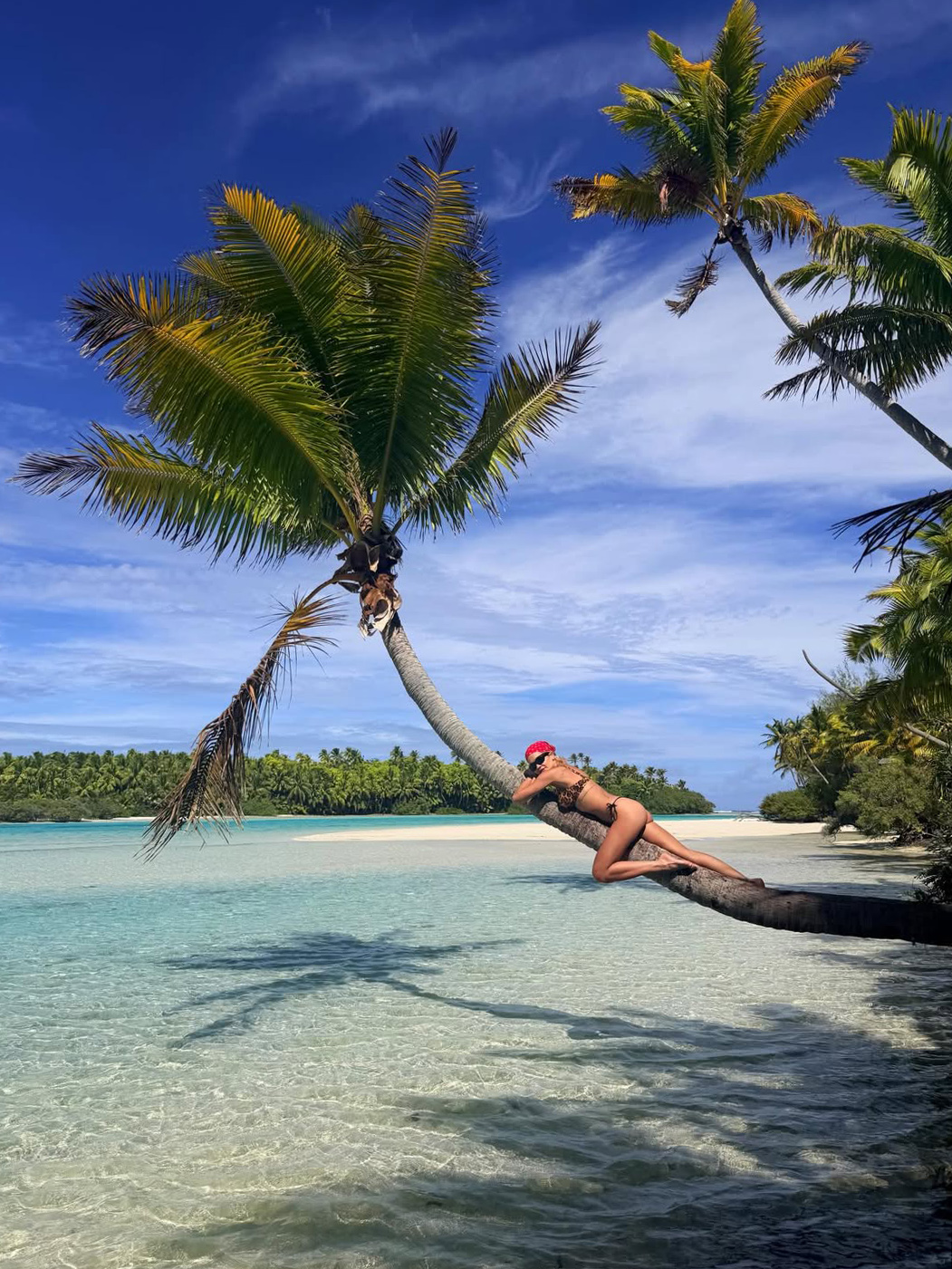 35-летняя Рита Ора позировала в леопардовом бикини, которое сочетала с красной косынкой и черными солнцезащитными очками. Певица убрала волосы под головной убор и отказалась от макияжа. Поп-исполнительница позировала, лежа на пальме.
