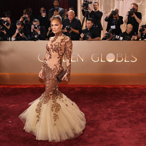 56-летняя Дженнифер Лопес посетила церемонию вручения премии «Золотой глобус», которая состоялась 12 января в Лос-Анджелесе. Актриса предстала на красной дорожке в наряде Жана Луи Шеррера из коллекции Haute Couture 2003 года. Певица выбрала бежевое прозрачное платье с коричневой вышивкой и пышной юбкой. Поп-исполнительница дополнила образ серьгами с бриллиантами и кольцом от Sabyasachi, туфлями и шоколадным клатчем Judith Leiber. Знаменитости собрали волосы в пучок с прядью у лица и сделали макияж с коричневыми тенями, черными стрелками и блеском для губ.