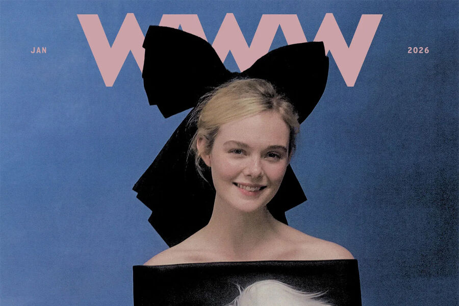 Эль Фаннинг позировала в черном бархатном топе и с бантом на голове. В руках актриса держала игрушечного кота. Фотографом и арт-директором съемки выступил Сильвестр Мако.