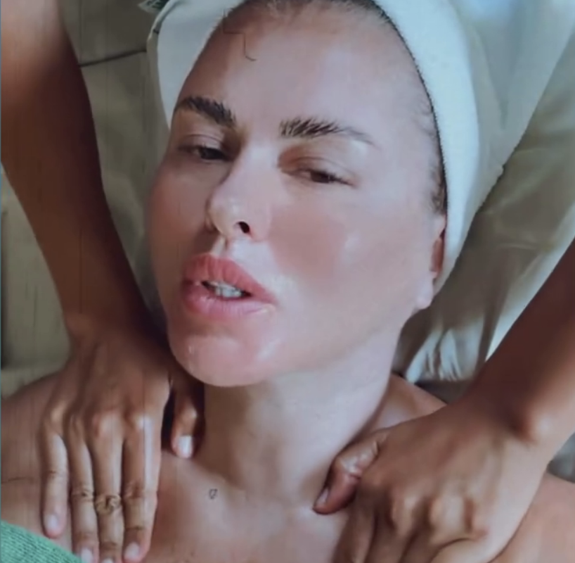 45-летняя Анна Семенович была запечатлена во время сеанса массажа. Певица лежала на кушетке, завернутая в полотенце. Поп-исполнительница отказалась от макияжа и убрала волосы в полотенце. Знаменитость призналась, что не представляет свою жизнь без массажа лица и тела. Артистка заявила, что ходит на процедуру дважды в неделю. Бывшая солистка группы «Блестящие» призвала поклонниц делать массаж хотя бы раз в неделю и любить себя.