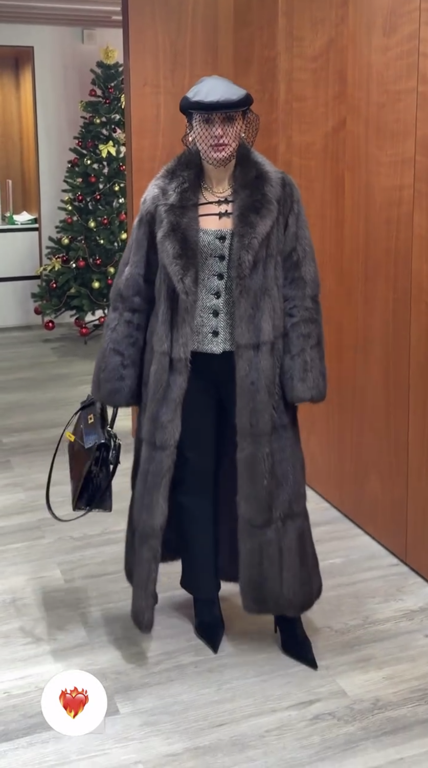 50-летняя Тина Канделаки позировала в твидовом корсетном топе, который сочетала с черными брюками, длинной шубой и ботильонами на каблуках. Телеведущая добавила к образу головной убор с вуалью, кожаную сумку Hermes, серьги и ожерелье. Продюсер предстала перед камерой с макияжем в естественных тонах.
