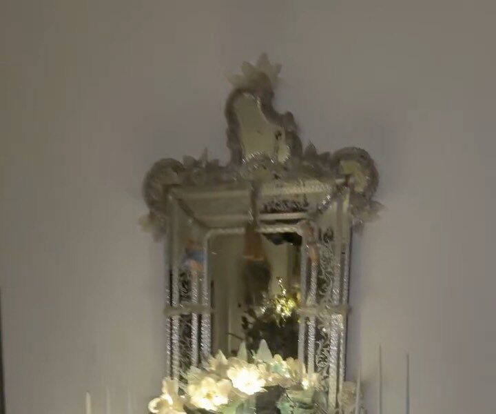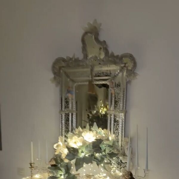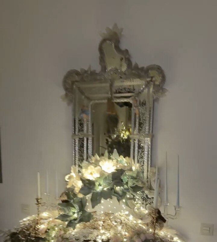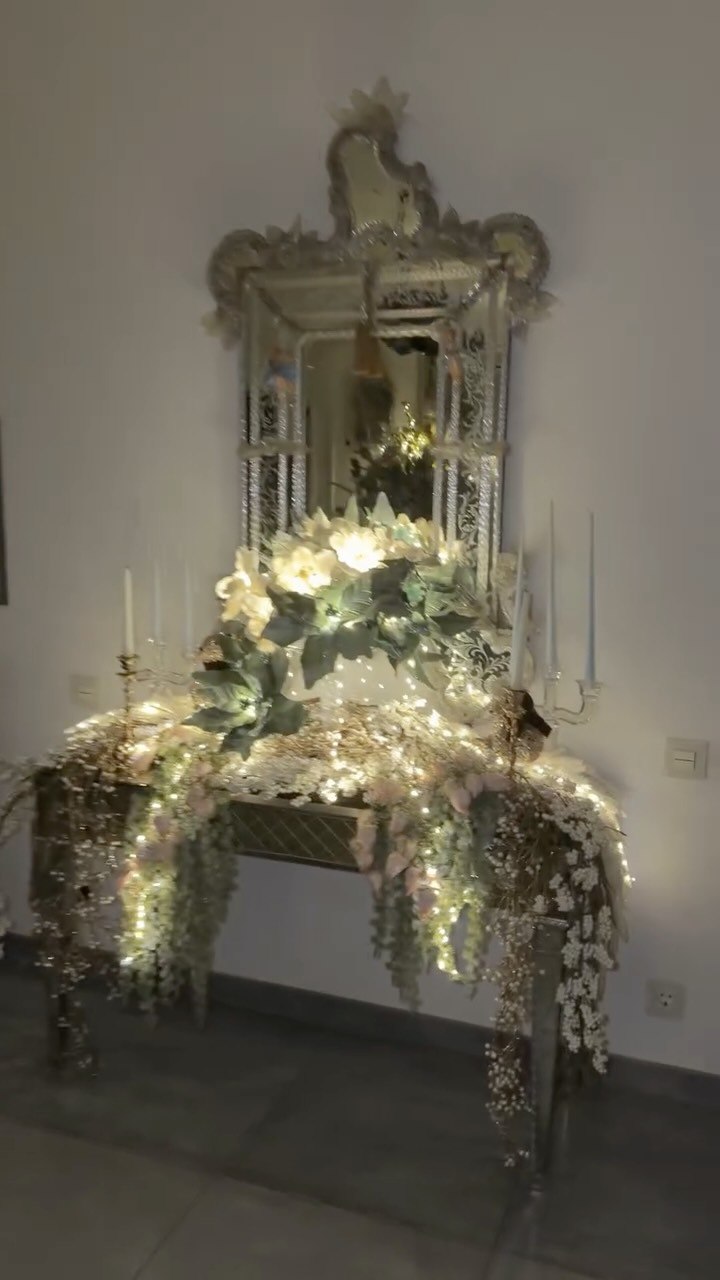 Рудковская сняла интерьер гостиной своего загородного дома. В центре композиции был стол с вазой, которая была украшена серебряными цветами, гирляндой и декором, который был заказан и куплен в Бельгии.