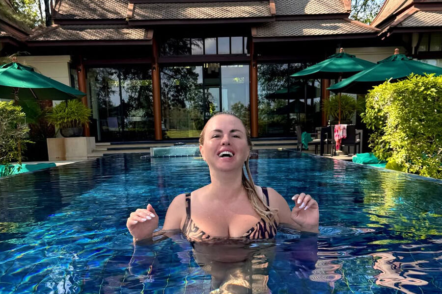 45-летняя Анна Семенович предстала перед камерой в леопардовом раздельном купальнике с декольте. Певица позировала с мокрыми распущенными волосами и без косметики. Бывшая солистка группы «Блестящие» стояла в бассейне на фоне виллы.