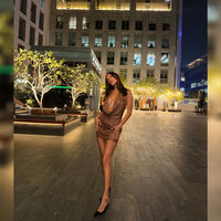 45-летняя Виктория Боня вышла на публику в песочном облегающем мини-платье с декольте до пупка. При этом модель не стала надевать бюстгальтер. Телеведущая добавила к наряду золотые кольца и лаковые черные туфли на каблуках. Знаменитость позировала с распущенными волосами и макияжем в нюдовых тонах с блеском для губ.