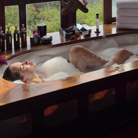 19-летняя Аврора Киба позировала перед камерой без одежды, надев только серьги с бриллиантами. Невеста народного артиста России была запечатлена с распущенными волосами и без макияжа. Девушка принимала ванну с пеной на фоне окна, из которого открывался вид на океан и пальмы.