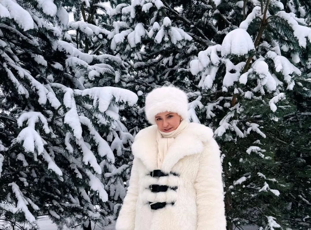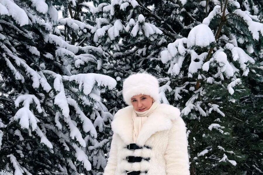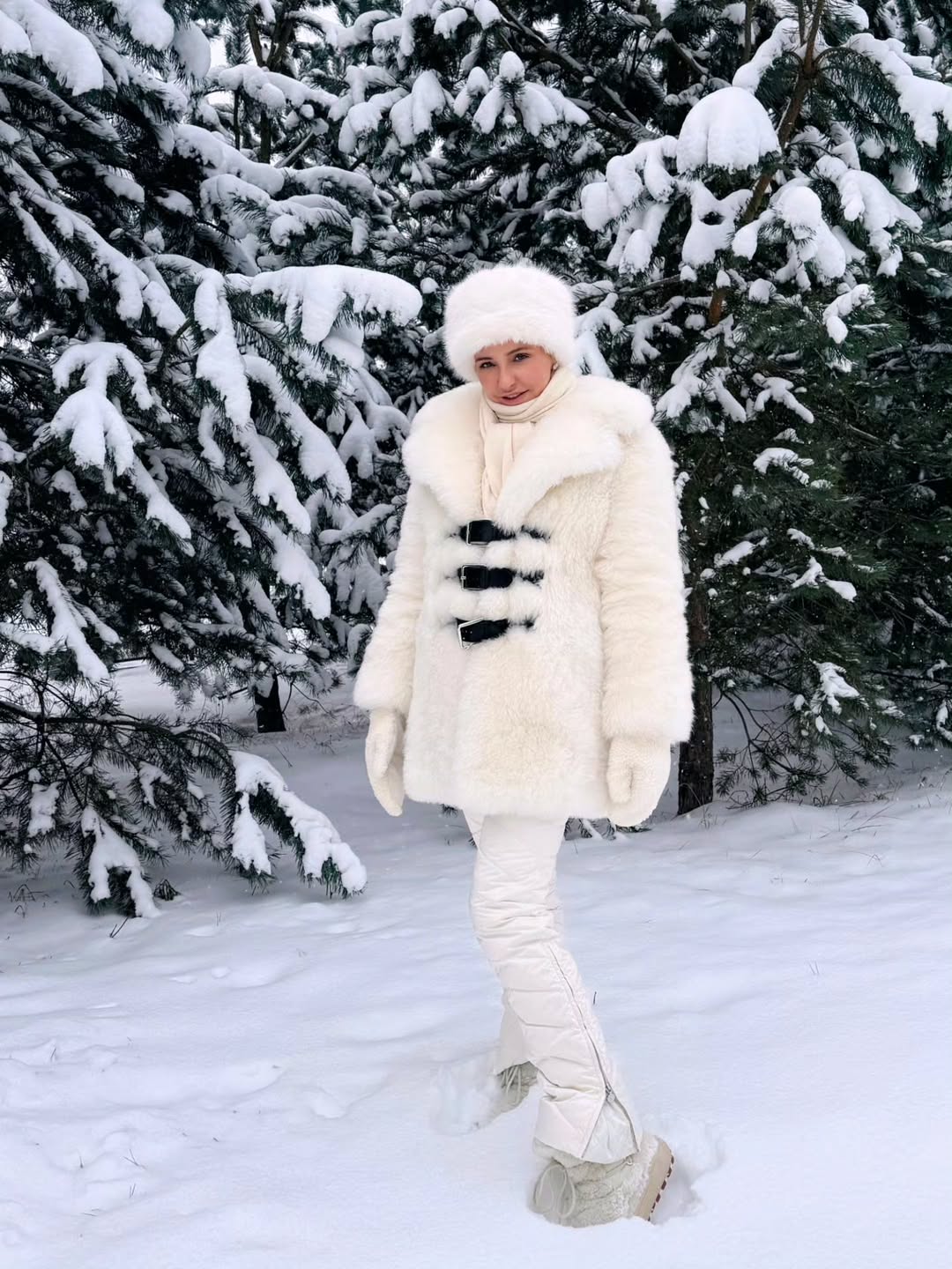 Татьяна Навка позировала в белой шубе и шапке-ушанке.