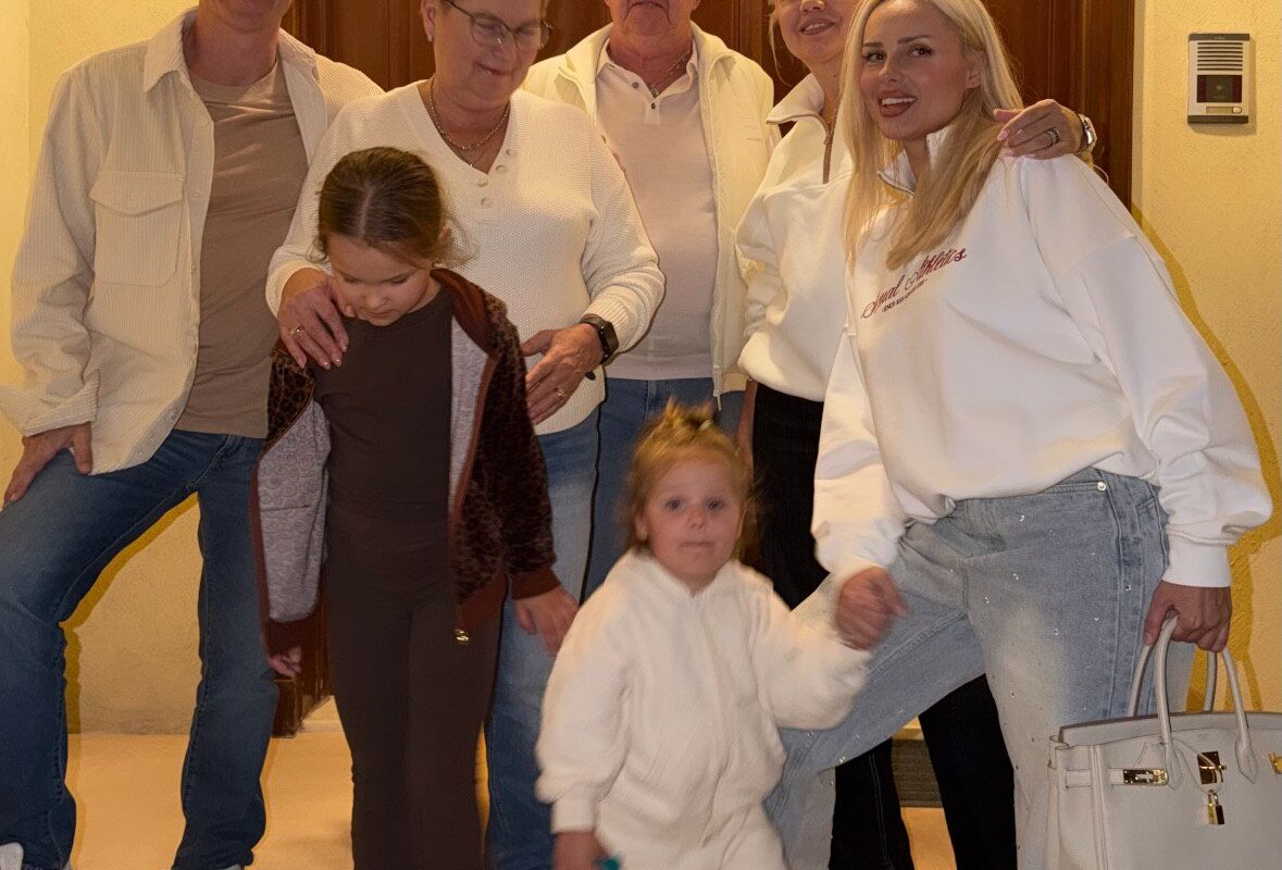 Ханна позировала перед входом в загородный дом с мужем Пашу, дочерьми и родителями.