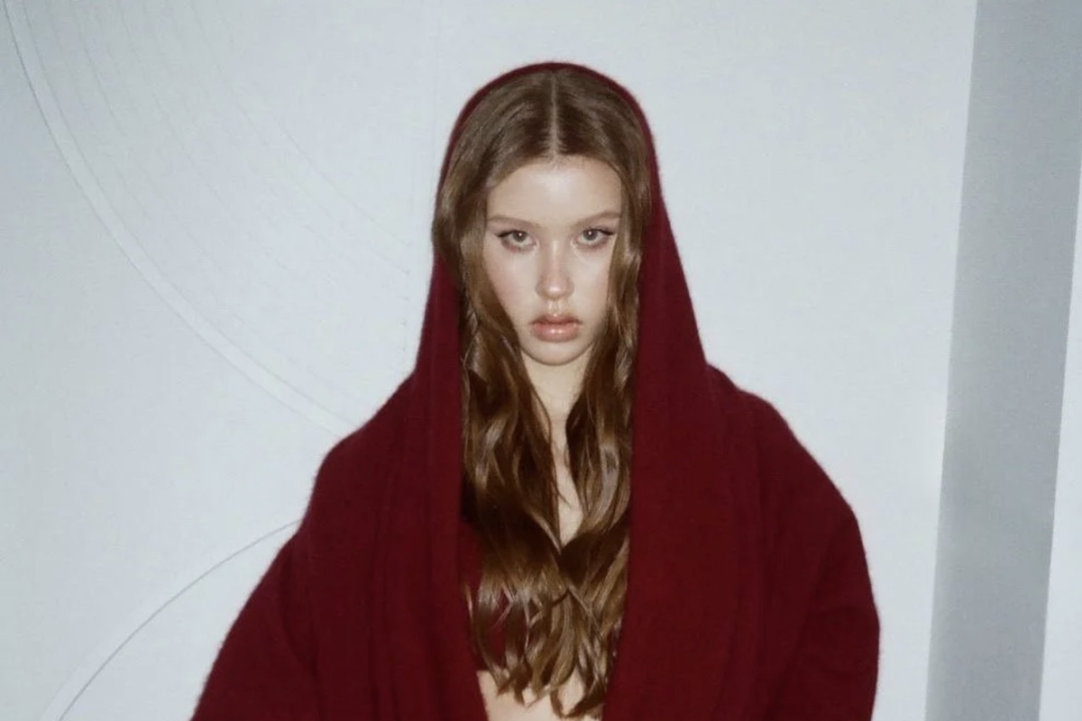 16-летняя Анна Пересильд предстала перед камерой в бордовом топе, который дополнила мини-юбкой в тон, кардиганом и черными кружевными колготками. Актриса позировала в кадре с уложенными распущенными волосами и макияжем с черными стрелками и блеском для губ.