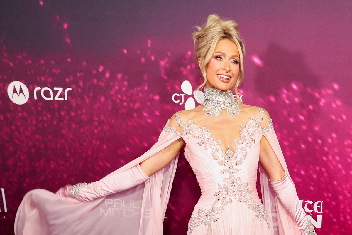 44-летняя Пэрис Хилтон вышла в свет в розовом платье с экстремальным разрезом и глубоким декольте. Образ дополнили перчатки и туфли в стразах. Ей также сделали укладку с локонами и вечерний макияж.