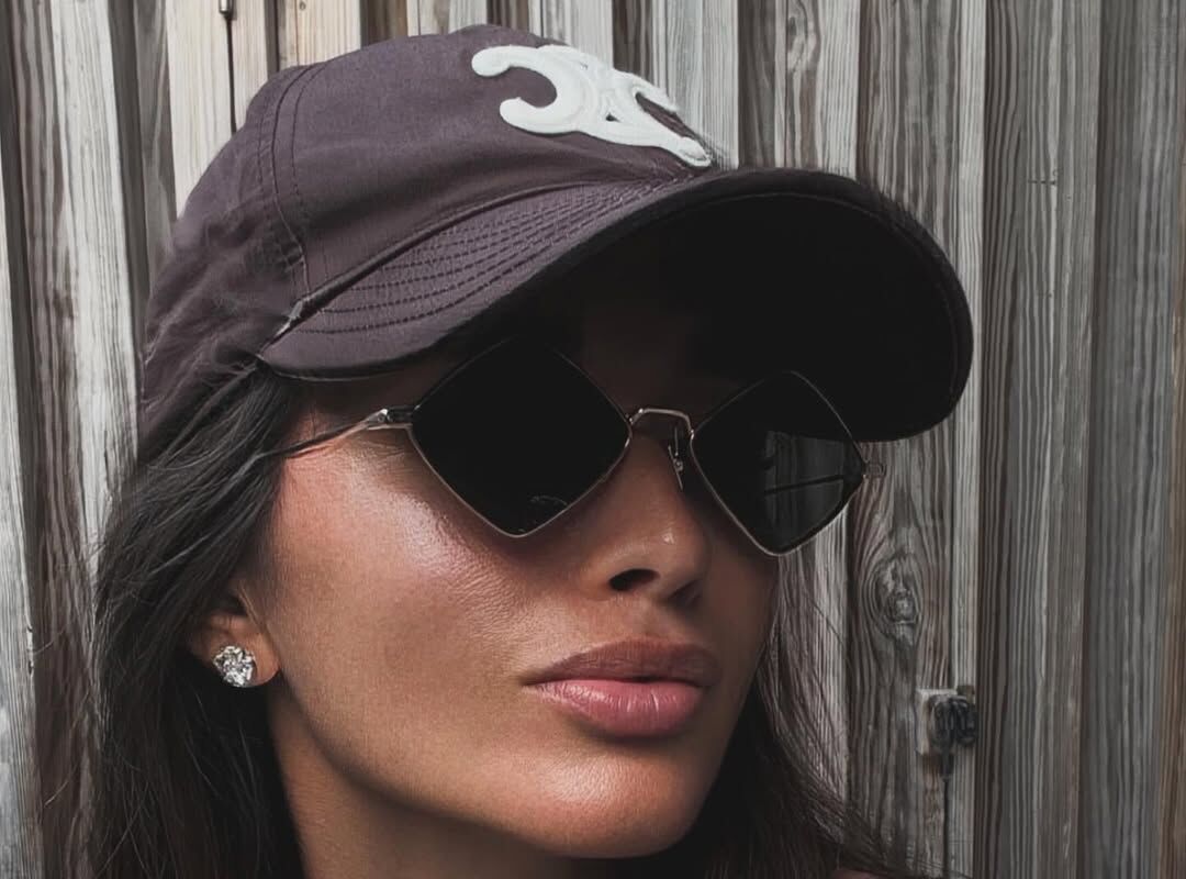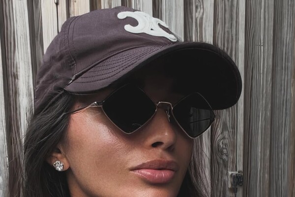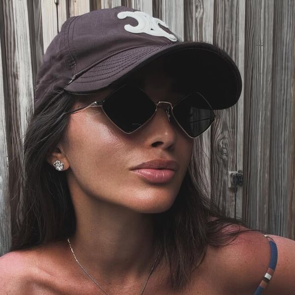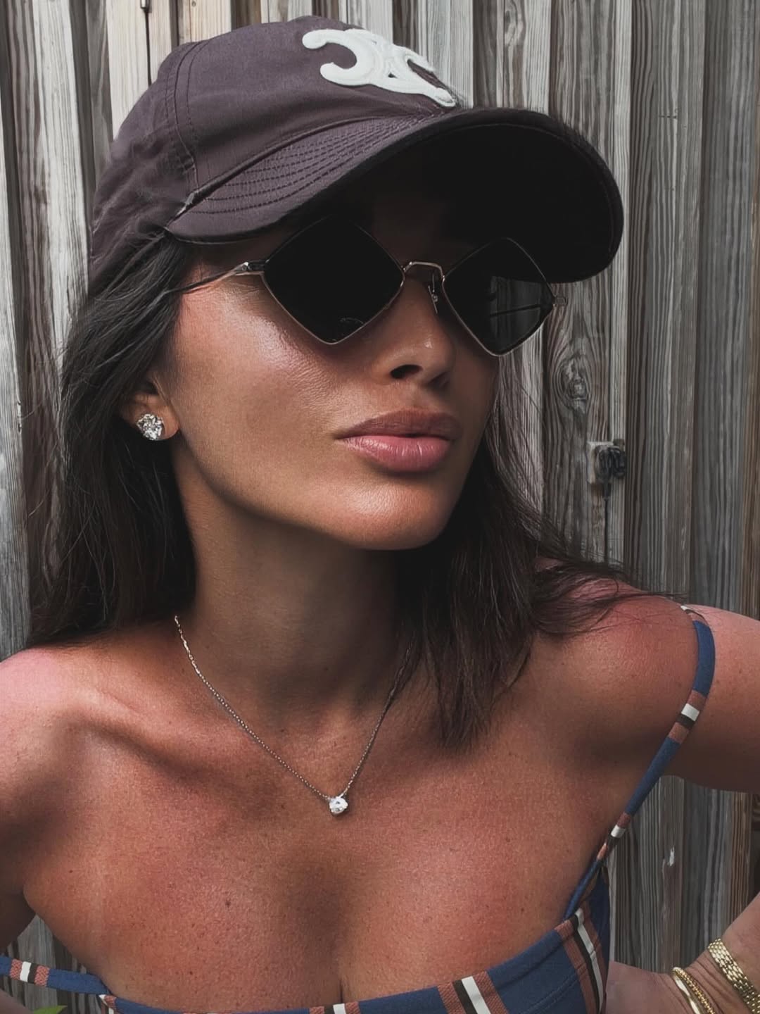 Ксения Бородина позировала в полосатом купальнике с глубоким декольте. Образ дополнили серьги и кулон с бриллиантами, а также кепка и очки.