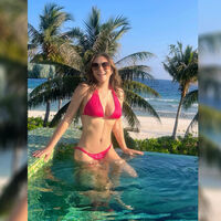 Элизабет Херли позировала перед камерой в розовом крошечном бикини и солнцезащитных очках. 60-летняя актриса предстала перед фотографом с распущенными волосами и без косметики. Артистка с улыбкой на лице стояла в бассейне на фоне пляже и океана.