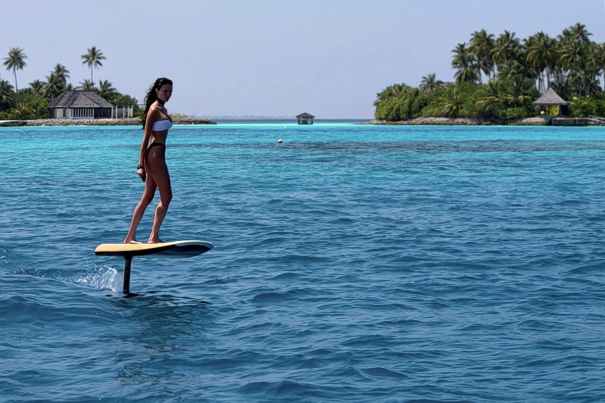 30-летняя Анастасия Решетова показала, как проходит ее отдых на Мальдивах. Модель прокатилась на доске на фоне виллы. Блогерша была запечатлена в бикини, которое состояло из белого лифа и черных плавок. Бывшая девушка Тимати позировала с распущенными волосами.