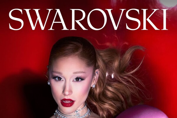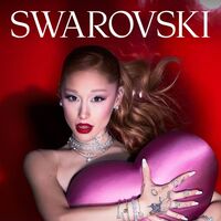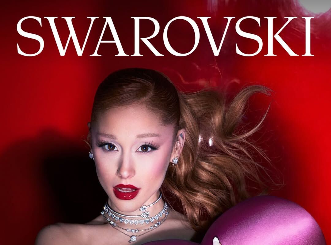 Ариана Гранде в новом рекламном кампейне Swarovski. Певица позировала в красном корсетном платье с глубоким декольте. Ей также сделали броский макияж.