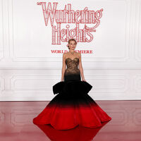 Марго Робби посетила премьеру фильма по роману Эмили Бронте «Грозовой перевал», в котором сыграла главную роль. Мероприятие состоялось 28 января в Голливуде. Актрису сопровождал ее коллега по экранизации Джейкоб Элорди. Для выхода в свет артиста выбрала корсетное платье с кружевных верхом и черно-красной макси-юбкой Schiaparelli. Образ артистки завершило золотое колье Cartier с бриллиантом в форме сердца, которое принадлежало Элизабет Тейлор. Визажист сделал знаменитости макияж в нюдовых тонах, а стилист уложил волосы в пучок.