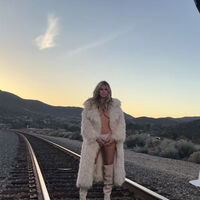 Модель Хайди Клум без одежды и с шубой на плечах прогулялась по железнодорожным путям